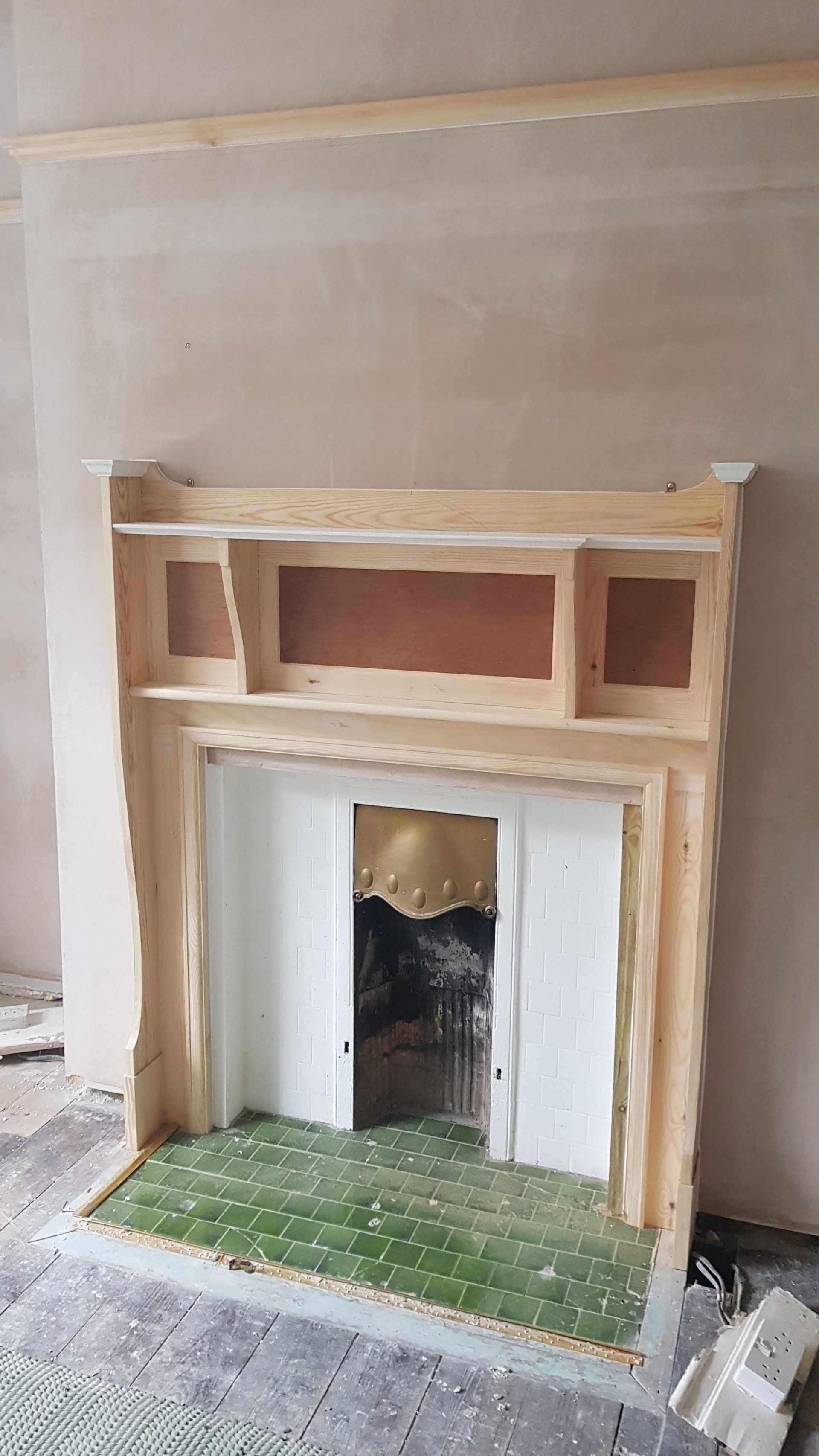 The new fire surround was made & installed, the picture rail fitted. Just the skirting outstanding.